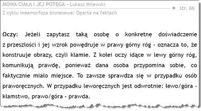 Jeśli przez myśl Ci przeszło, że ten e-book to kolejne wydawnictwo dotyczące tzw. mowy ciała, to... czym prędzej pozbądź się takich myśli. Ja sam jestem wielkim sceptykiem wobec tego, co tradycyjnie i potocznie zwane jest mową ciała, ale to, o czym napisał Łukasz, to zupełnie coś innego.