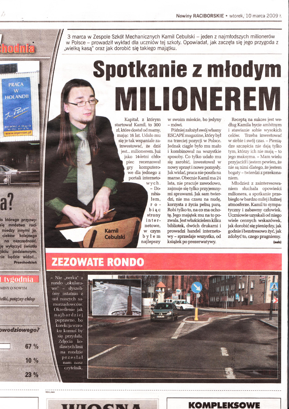 w 2007 roku została założona fundacja im. Kamila Cebulskiego (www.kcbe.pl), która zajmuje się aktywnym promowaniem przedsiębiorczości wśród młodzieży. W organizowanych Alternatywnych Lekcjach Przedsiębiorczości (www.alp.kcbe.pl), udział wzięło w ostatnim roku szkolnym 12% maturzystów, co